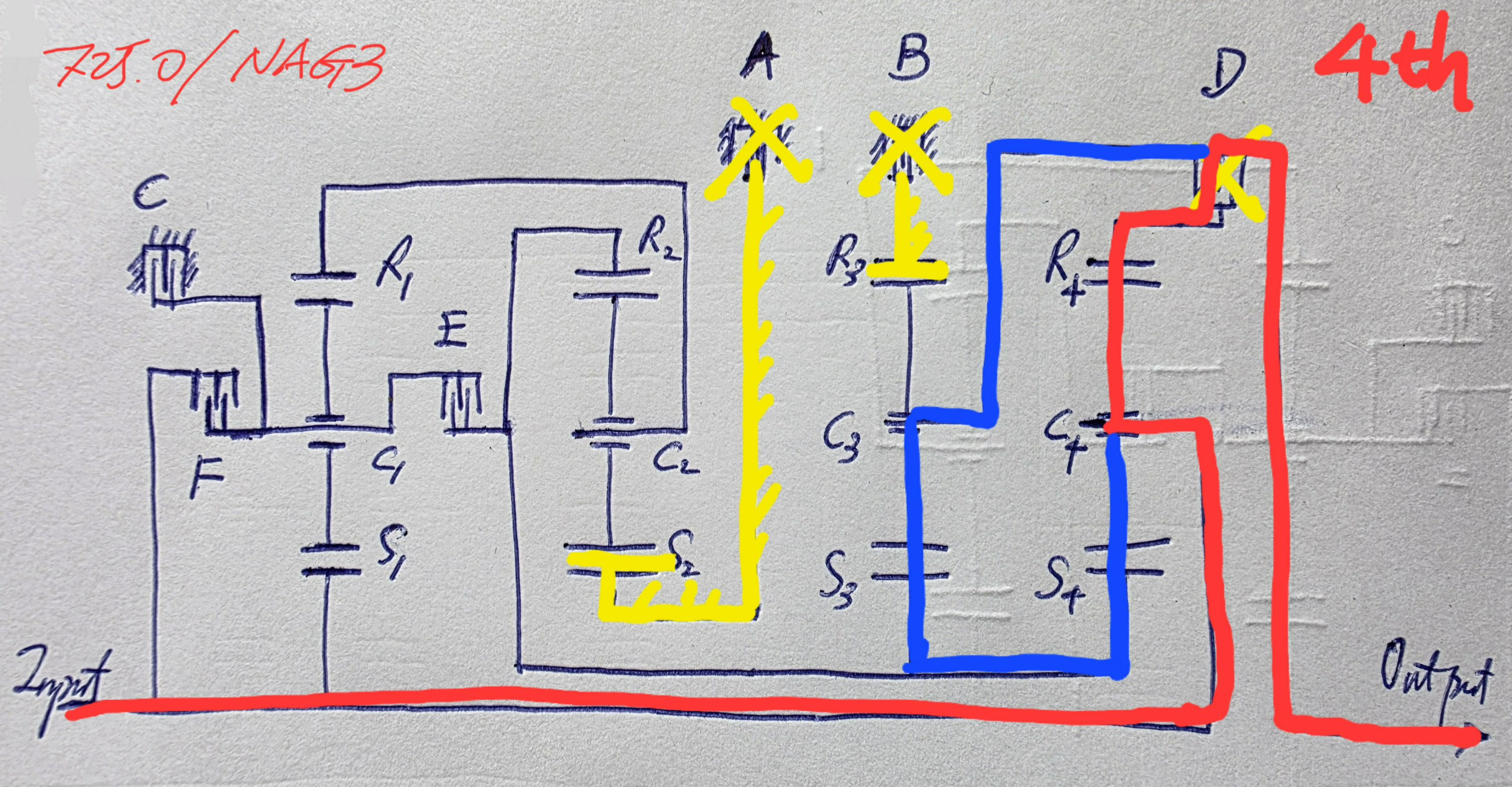 In 4th, torque goes through C4 > R4 > D. Counterholding is C4 > S4 > S3 > C3. Gearset 1 rotates parasitically. Like we found often in the ZF 8HP, the two rear gearsets are balanced dynamically.