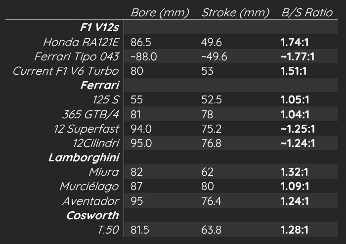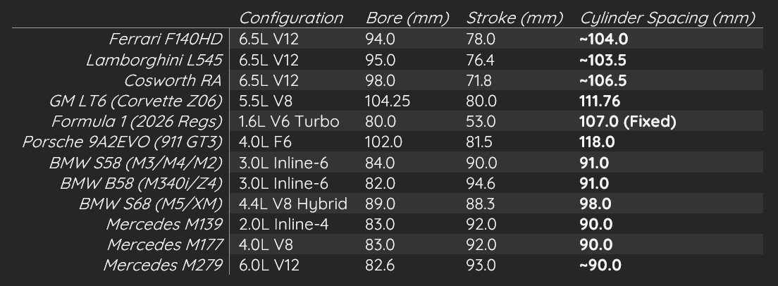 For an engine targeting the working enthusiasts, an oversquare setup that is not too extreme can balance top-end performance and daily drivability. This is why I believe 74mm bore, 58mm stroke, and a 1.28:1 B/S ratio is spot on. A racing engine would be more oversquare, while a V12 designed for luxury cars should be less so.