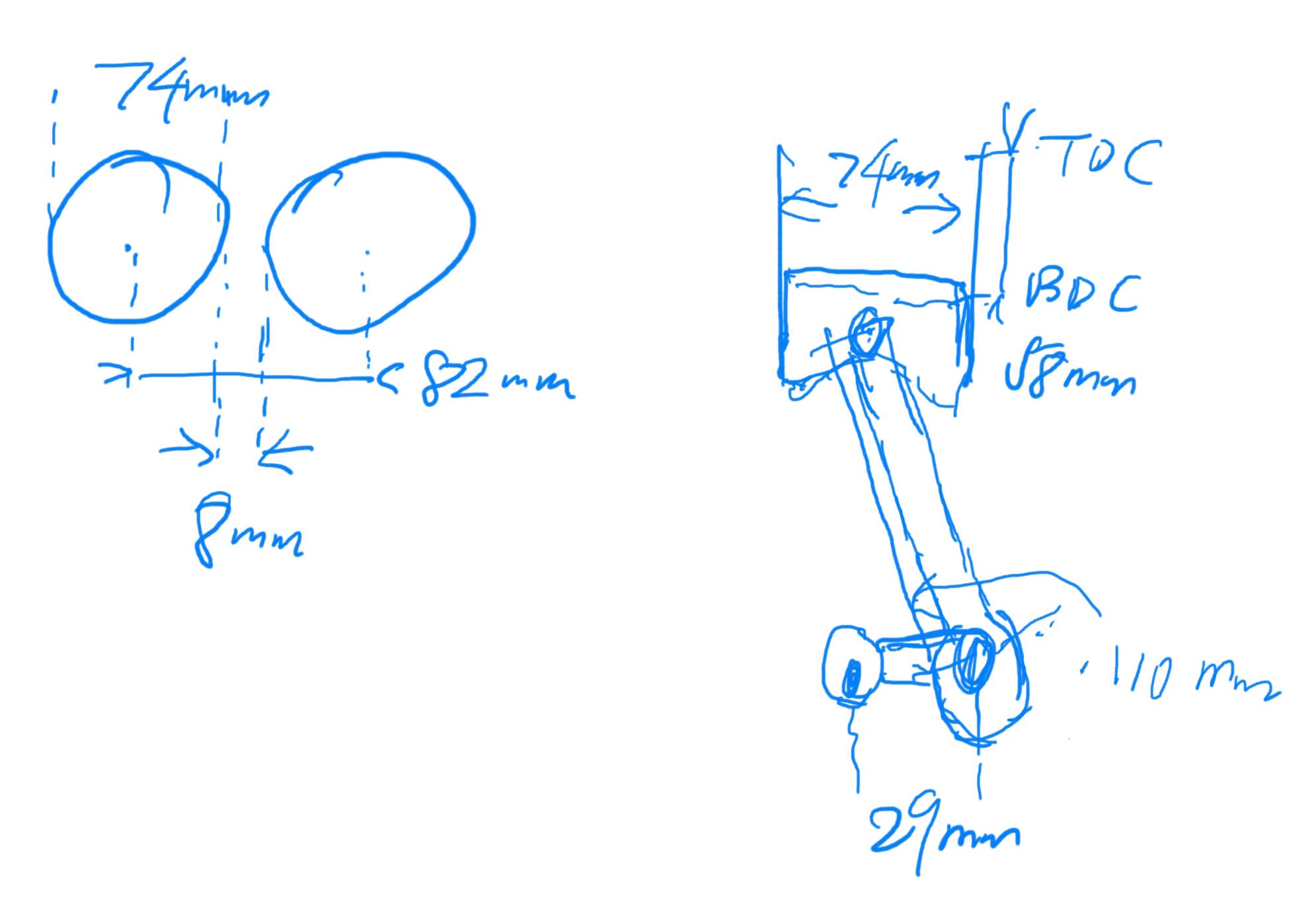 - Bore x stroke: 74mm x 58mm