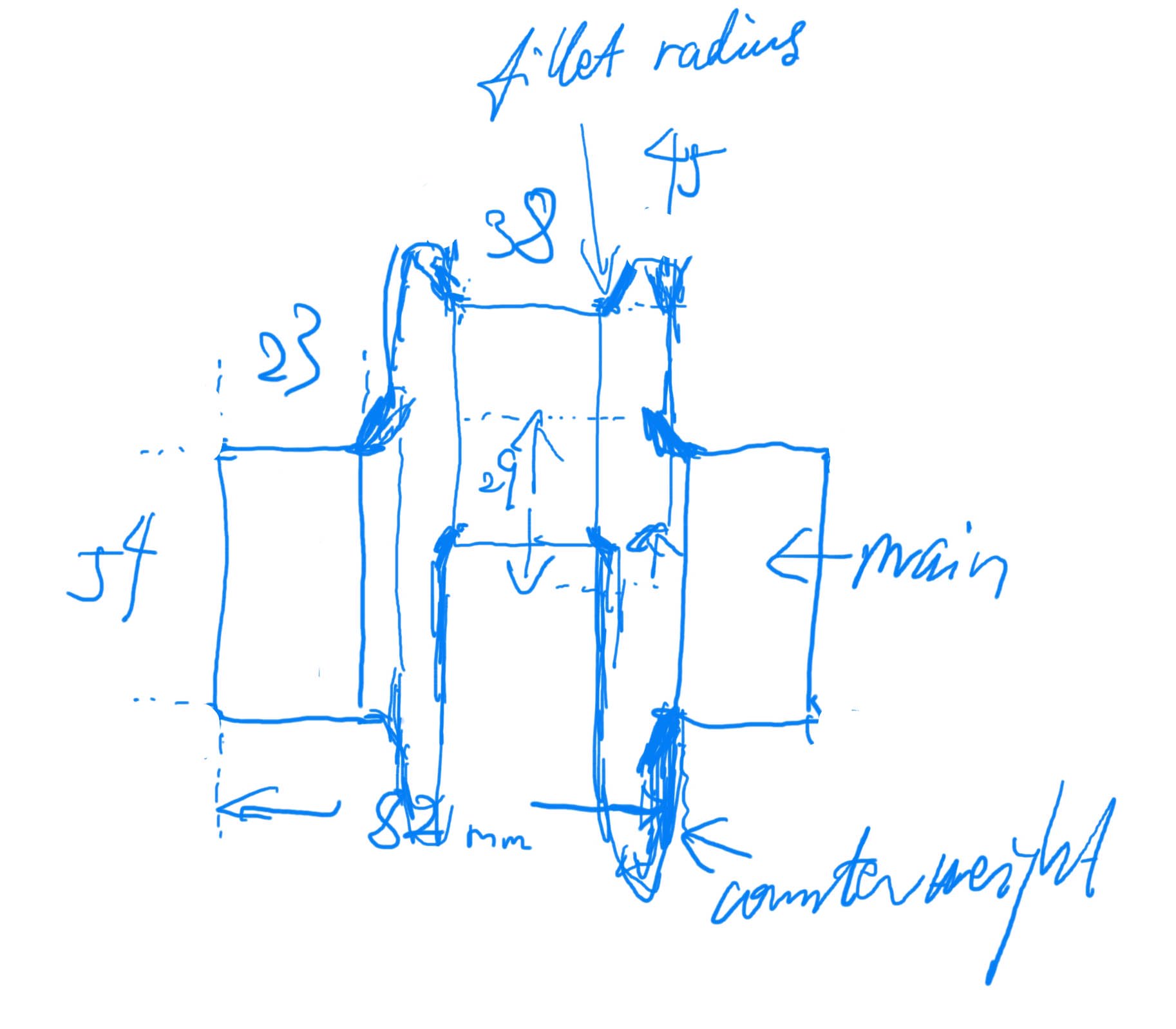 With an 82mm cylinder spacing, the choice of bearing width is limited. To sustain oil film strength, it should not go under 17mm for the big end or 22mm for the main. Therefore, the choice of 18mm for rod bearing width and 23mm for main bearing width is borne out of necessity, since we also need to account for fillet radius, cheek thickness, and thrust oil clearance.
